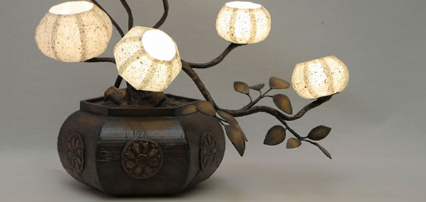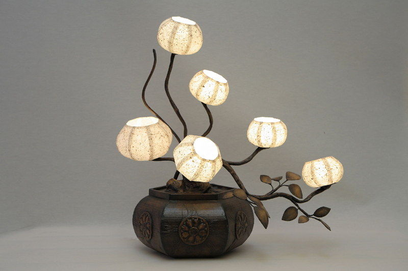 韓紙-inでは、その昔ながらの技法を使い現代的なデザイン作品を製作しています。中でも照明は多くの方々に愛用されており、韓紙という素材感から飽きがこなく使えば使うほど情感を増すというインテリアとして独特の効果をもたらします。